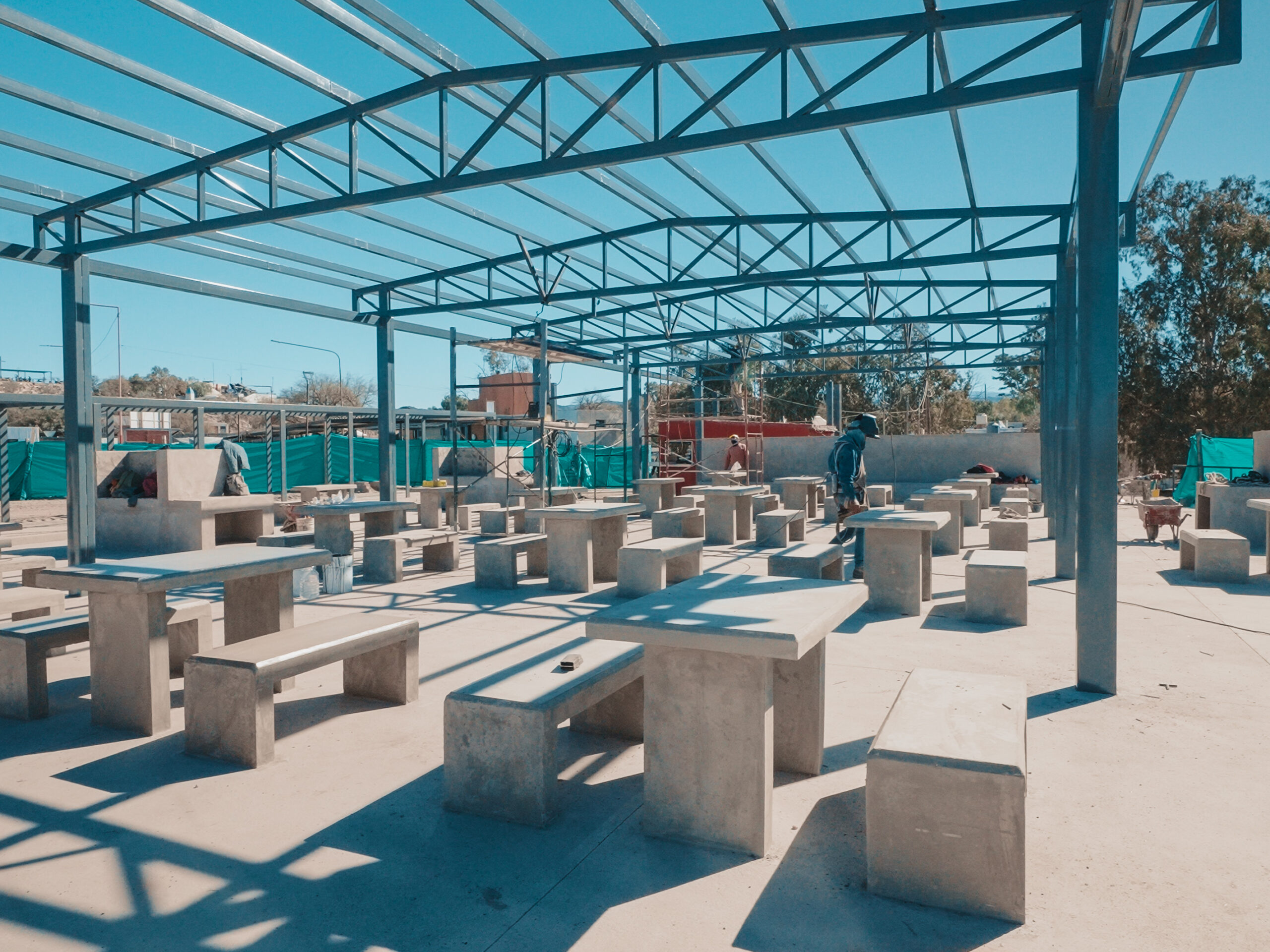 Ya se concretaron tareas de reorganización de parrilleros, mesas y bancos, además de la restauración de los asadores existentes. También se avanzó con el montaje de nuevas estructuras metálicas y la instalación de equipamiento, lo que marca un cambio visible en la fisonomía del espacio.