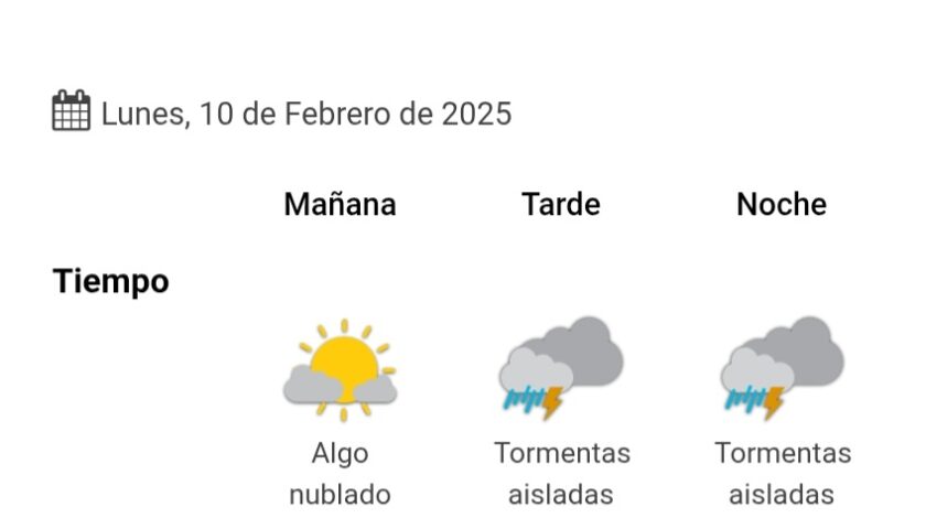 El pronóstico extendido indica un martes un poco más agradable con 29° y un miércoles con 31°. Las lluvias aisladas no se deben descartar.