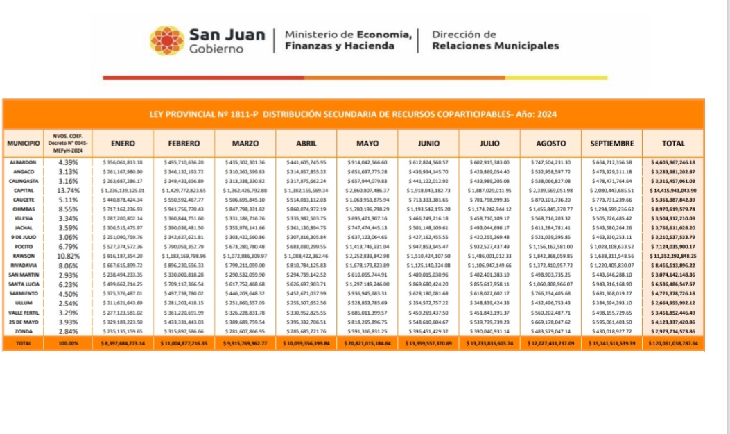 En un contexto donde la sociedad demanda – cada vez más – una mayor transparencia de los números que se manejan en una administración municipal, DIARIO REVOLUCIÓN con información que emana desde el Ministerio de Hacienda y Finanzas de la provincia de San Juan, accedió al monto percibido en la Municipalidad de Calingasta durante los meses de julio, agosto y septiembre del 2024.