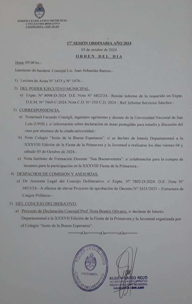 En el recinto de la calle Ramon Díaz de Tamberías, el Honorable Concejo Deliberante de Calingasta llevó a cabo la 17° Sesión Ordinaria del 2024.
