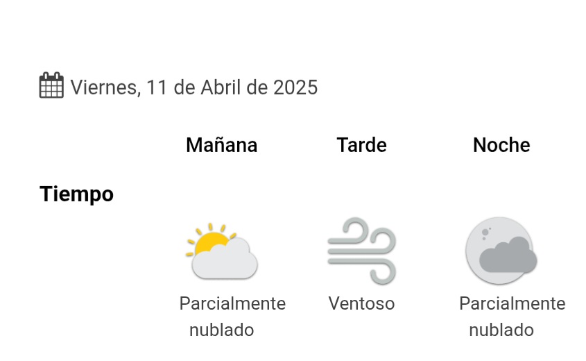 Llegando casi a mitad de mes, el clima durante el fin de semana estará estable y apacible en todo Calingasta. El Servicio Meteorológico Nacional estima un viernes 11 de abril con una mínima de 6° y una máxima de 20°, cielo parcialmente nublado, condiciones de baja humedad, 0% de probabilidad de precipitaciones y alerta amarillo por llegada de viento zonda en la tarde, donde el área será afectada con ráfagas entre 30 y 45 km/h. Este fenómeno puede provocar reducción de visibilidad y aumento repentino de temperatura.