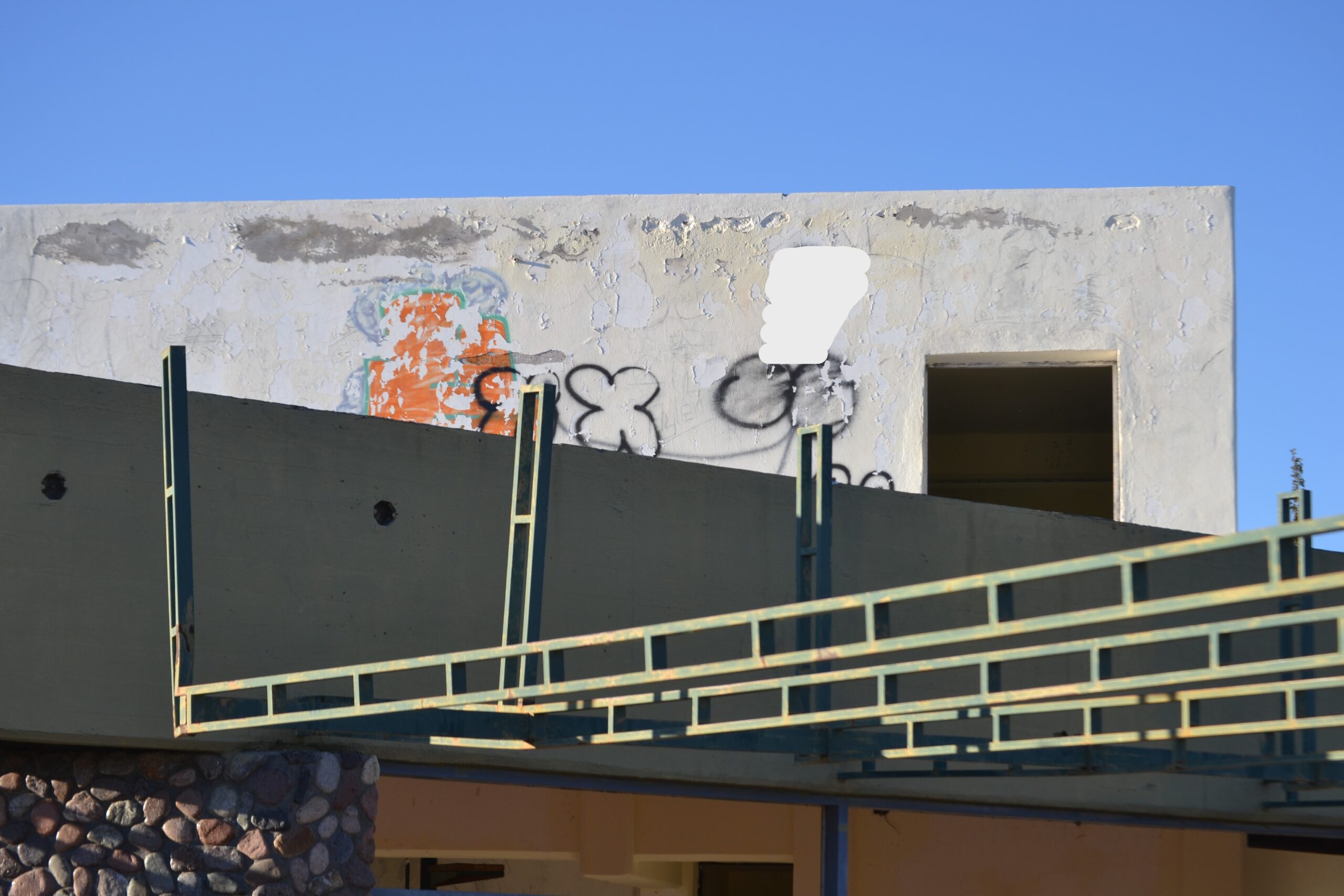 El contraste en un solo lugar. Por un lado una de las estructuras más icónicas de Calingasta como el Cristo de la Misericordia que se encuentra en buen estado con diferentes cuestiones que hacen a su culminación y una hostería con su pileta deterioradas. Los baños exteriores están abandonados pero en condiciones de volver a usarse sin mayores inversiones ya que las rejas impiden el ingreso de cualquier persona.