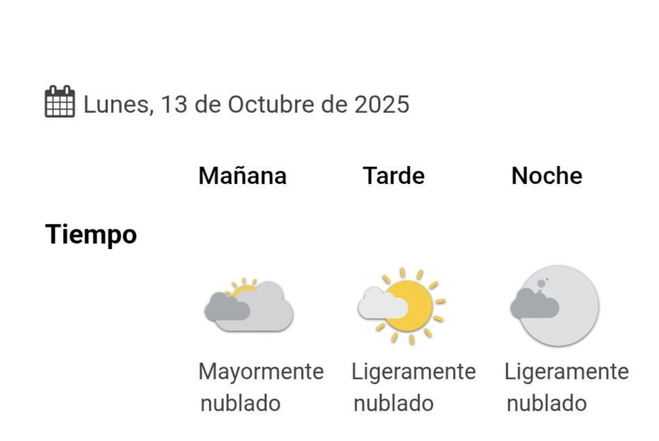 Octubre continúa con calor intenso y sensaciones térmicas que se aproximan a los 30º. El Servicio Meteorológico Nacional anuncia para Calingasta, un lunes 13 de octubre con una mínima de 2º y una máxima de 26º, cielo ligeramente nublado en la mañana y despejado en la tarde – noche, 0% de probabilidad de lluvias, condiciones de baja humedad y presencia de viento con dirección predominante del sector oeste a 22 km/h. El tiempo se sostendrá estable en los próximos días.
