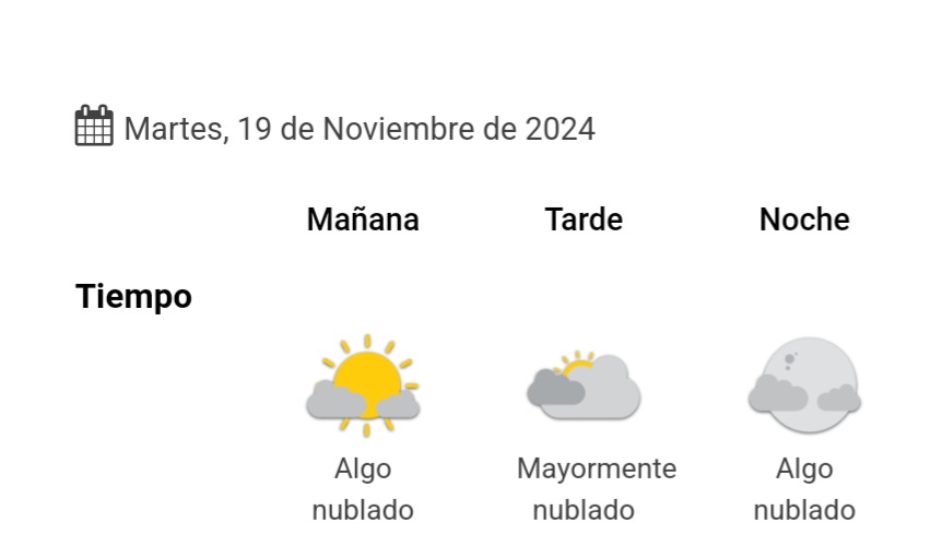 En un martes parecido al lunes por el fin de semana XL que se vivió en le país, el tiempo tendrá temperatura agradable en Calingasta. El Servicio Meteorológico Nacional anticipa un martes 19 de noviembre con una mínima de 12° y una máxima de 29°, con cielo parcialmente nublado, sin probabilidad de precipitaciones y llegada de viento del sector oeste a 22 km/h para la siesta. Según el organismo del clima, será una semana estable.