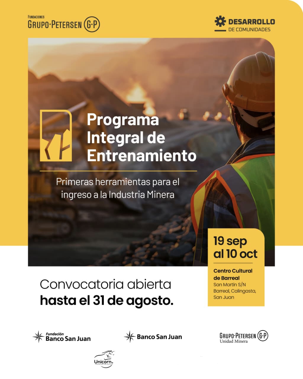 «Es un programa que llevamos adelante con un aliado, que es Unicorn, una sociedad argentino-canadiense, una unidad capacitadora que va a brindar los distintos módulos de esta capacitación. Las áreas de formación son varias, están dentro de nuestra información, en nuestra página web. Es empleabilidad y compromiso laboral, higiene y seguridad en obra vial, primeros auxilios de mal de altura, capacitación ambiental, armado de gaviones, banderillero, apuntador de obra y ayudante de topógrafo. Es un curso que dura 49 horas, se va a dictar los días viernes y sábado en la localidad de Barreal», señaló.