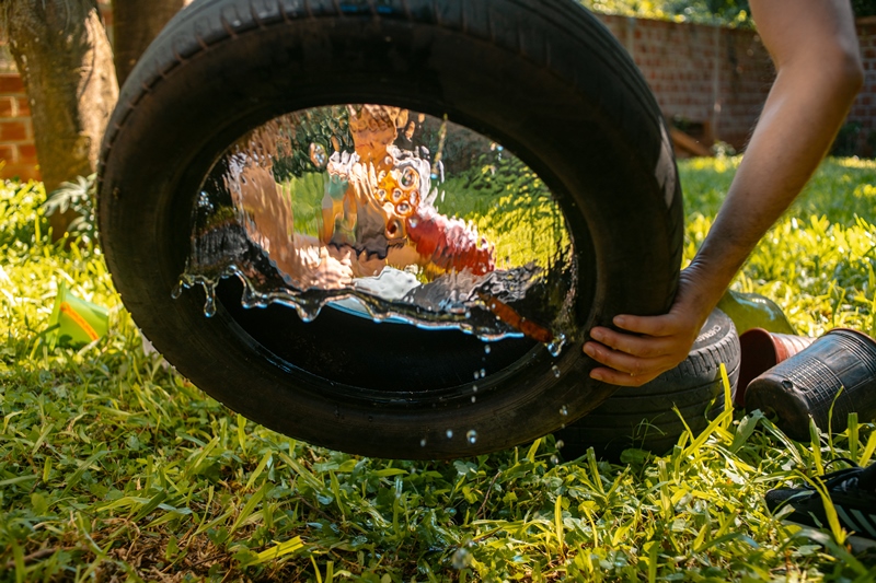 La hembra del Aedes aegypti pone sus huevos en las paredes de recipientes artificiales que juntan agua y las larvas y pupas (los estadios acuáticos) se desarrollan siempre en esos recipientes.