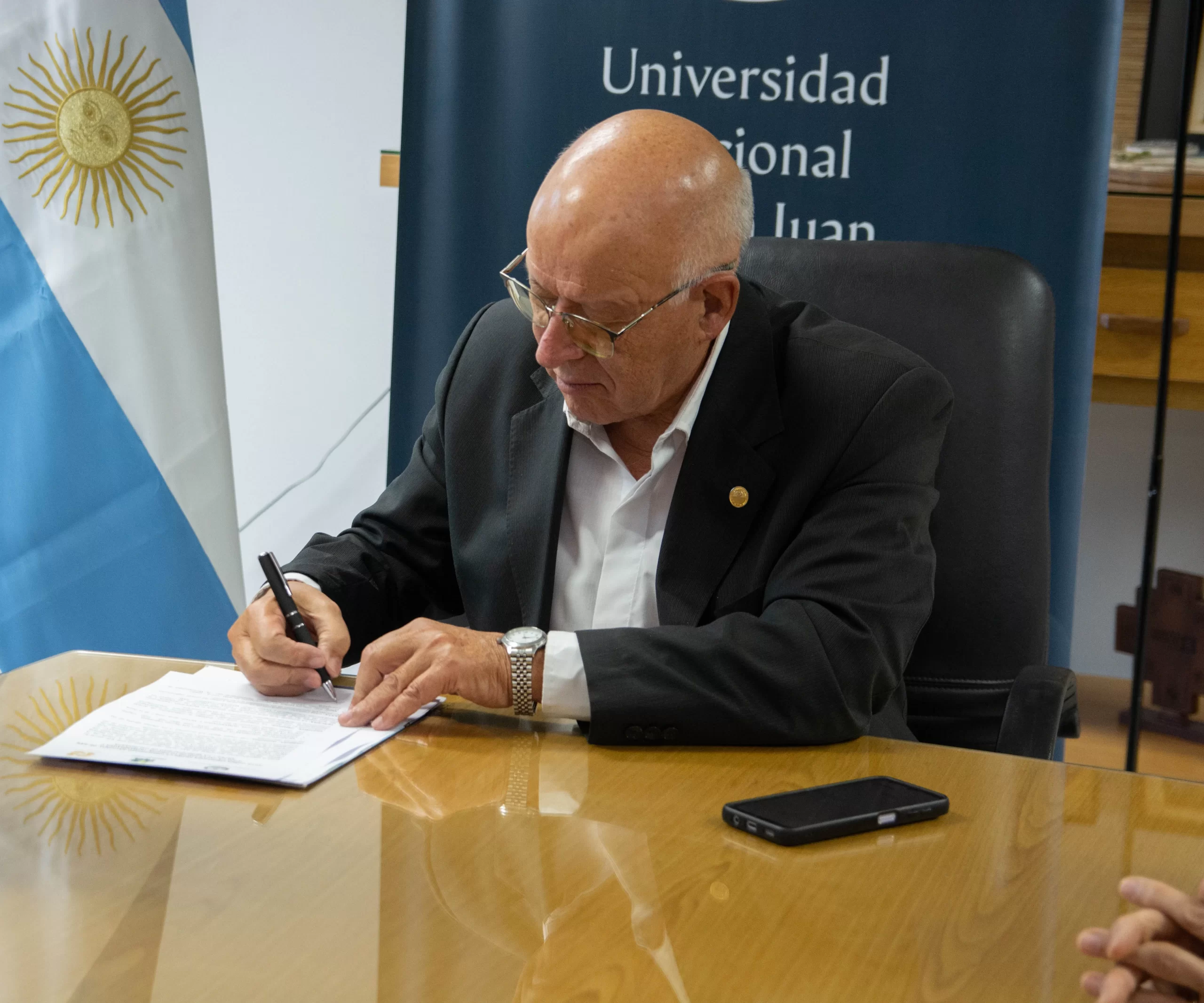 Participaron de esta firma el rector de la UNSJ, magíster ingeniero Tadeo Berenguer, la decana de la FFHA, magíster Myriam Arrabal, la directora del Instituto y Museo Arqueológico Profesor Mariano Gambier, magíster Claudia Mallea, entre otros.