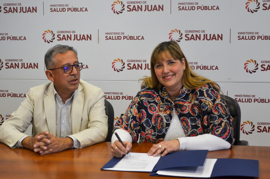 En virtud del Convenio Marco de Cooperación entre la Provincia de San Juan y la Universidad Nacional de San Juan por la creación de la Carrera de Medicina que formará parte de la Escuela Universitaria de Ciencias de la Salud (EUCS), se celebró este miércoles la firma de un acta complementaria suscripta por la ministra Alejandra Venerando y el director de la mencionada Escuela, Lic. Ángel Pinto.