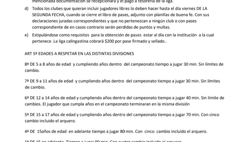 En una decisión consensuada con los presidentes de las instituciones que conforman la Liga Calingastina de Fútbol, se postergó una semana el inicio del Campeonato Apertura 2023, dando inicio el sábado 1 de abril. En los próximos días se va oficializar el fixture, mientras que el torneo en si, será de dos ruedas, todos contra todos. En la parte final la metodología a aplicar es disputar dos semifinales ida y vuelta lógicamente y la final a partido único, un formato similar al de la Copa Libertadores y Champions League.