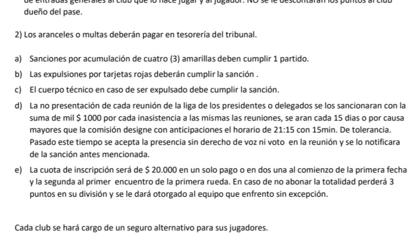 A continuación, el reglamento interno elaborado por el Tribunal de Penas y Transgresiones: