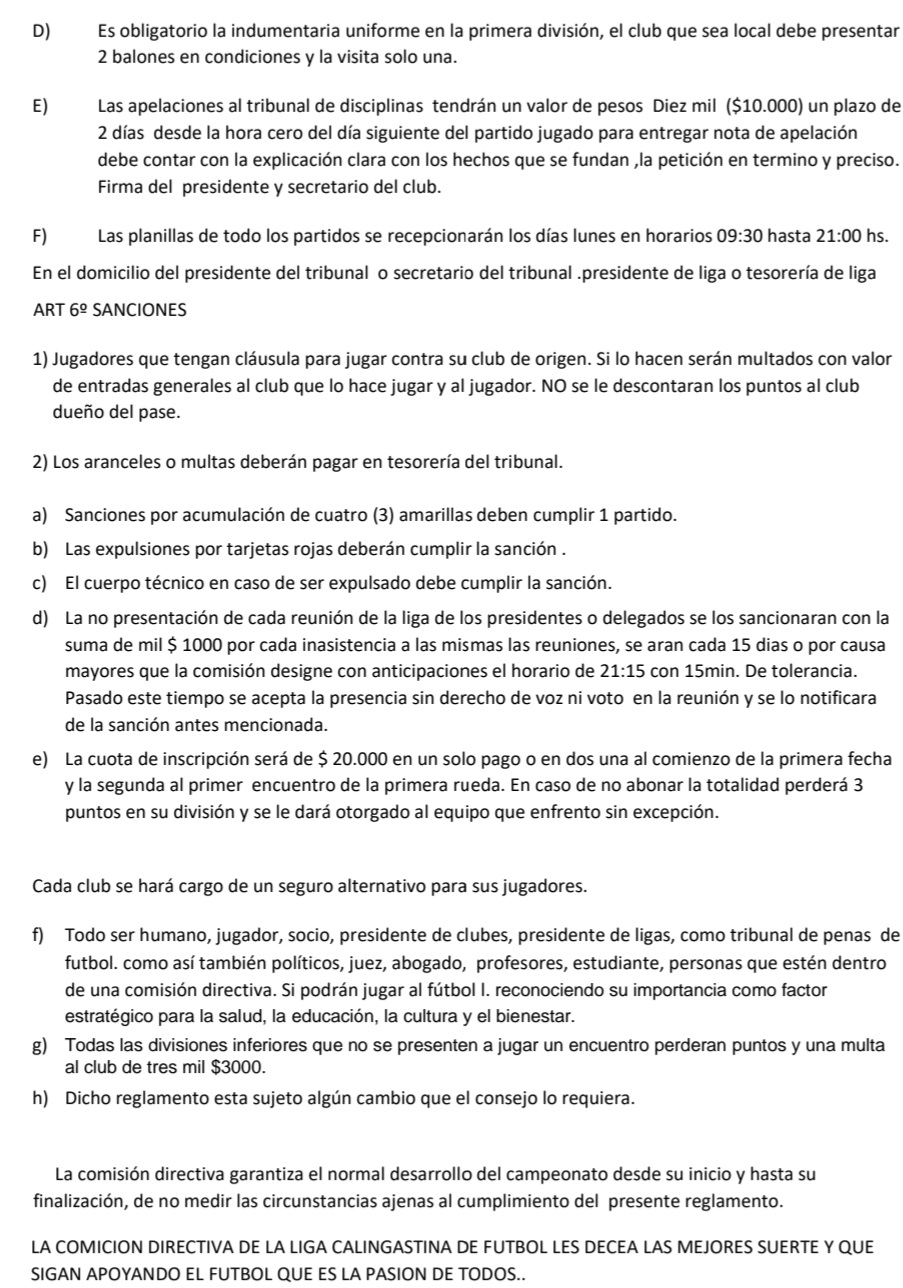 A continuación, el reglamento interno elaborado por el Tribunal de Penas y Transgresiones: