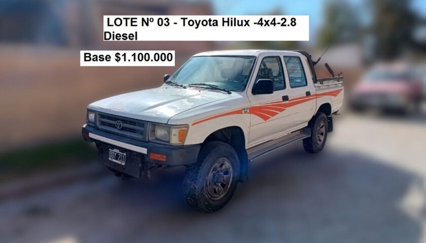 - TOYOTA – Hilux D/C 4×4 2.8 DIESEL – modelo 2000 – Base: $1.100.000