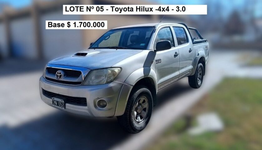 - TOYOTA – Hilux D/C 4×4 3.0 DIESEL – modelo 2010 – Base: $1.700.000
